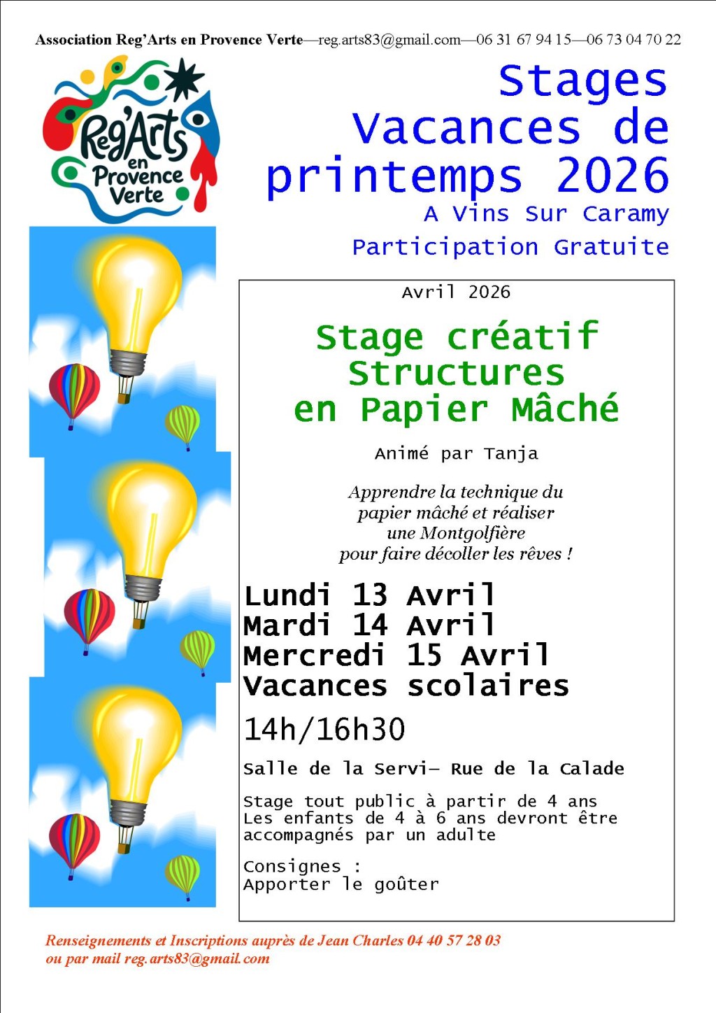 Du lundi 13 au mercredi 15 avril 2026 de 14h à 16h30.