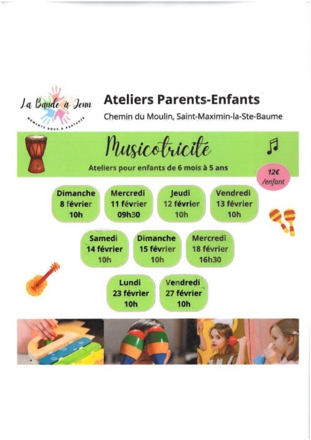 “ Venez explorer la musicalité et la motricité de vos enfants avec cet atelier qui allie éveil musical, éveil corporel, comptines, et découverte avec manipulations d'instruments ! Atelier parent/enfant. ”