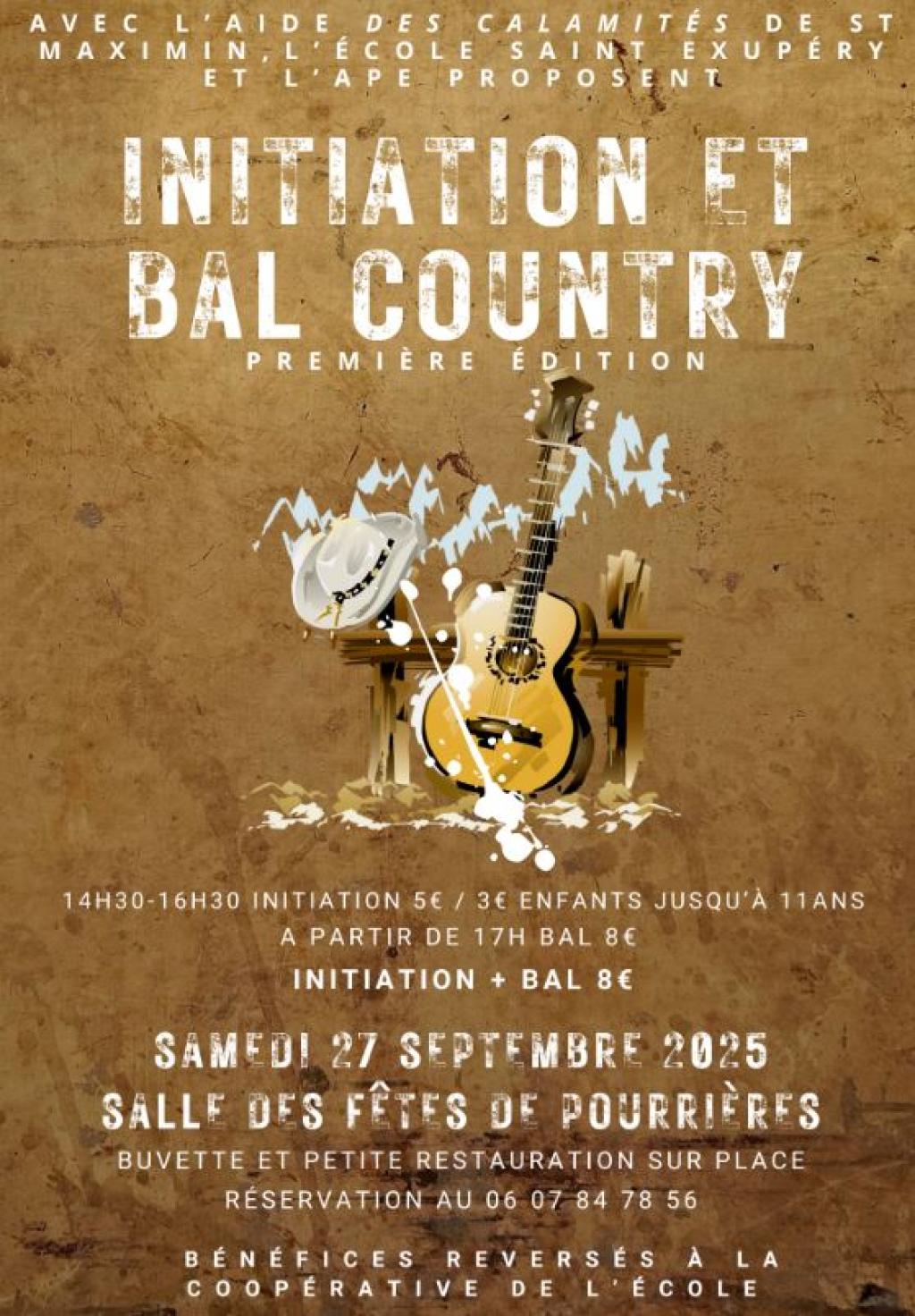 “ Avec l'aide des Calamités de Saint Maximin, l'Ecole Saint Exupéry et l'APE vous propose un bal country et des initiations à cette danse. ”