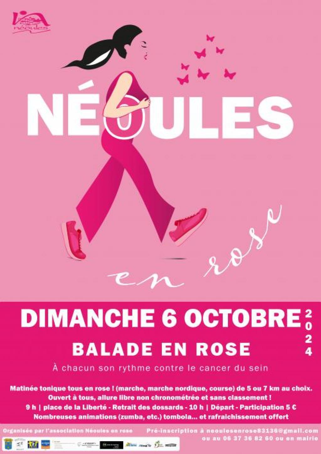 “ Balade en rose, à chacun son rythme contre le cancer ! Marche, marche nordique, course, de 5 à 7 km au choix. Ouvert à tous, allure libre non chronométrée et sans classement. Nombreuses animations et tombola. Rafraichissement offert. ”