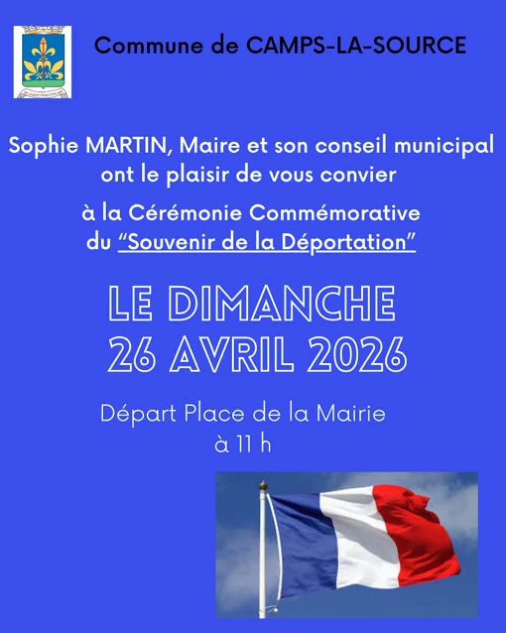 “ Sophie MARTIN, Maire et son conseil municipal ont le plaisir de vous convier à la cérémonie commémorative du Souvenir de la Déportation ”