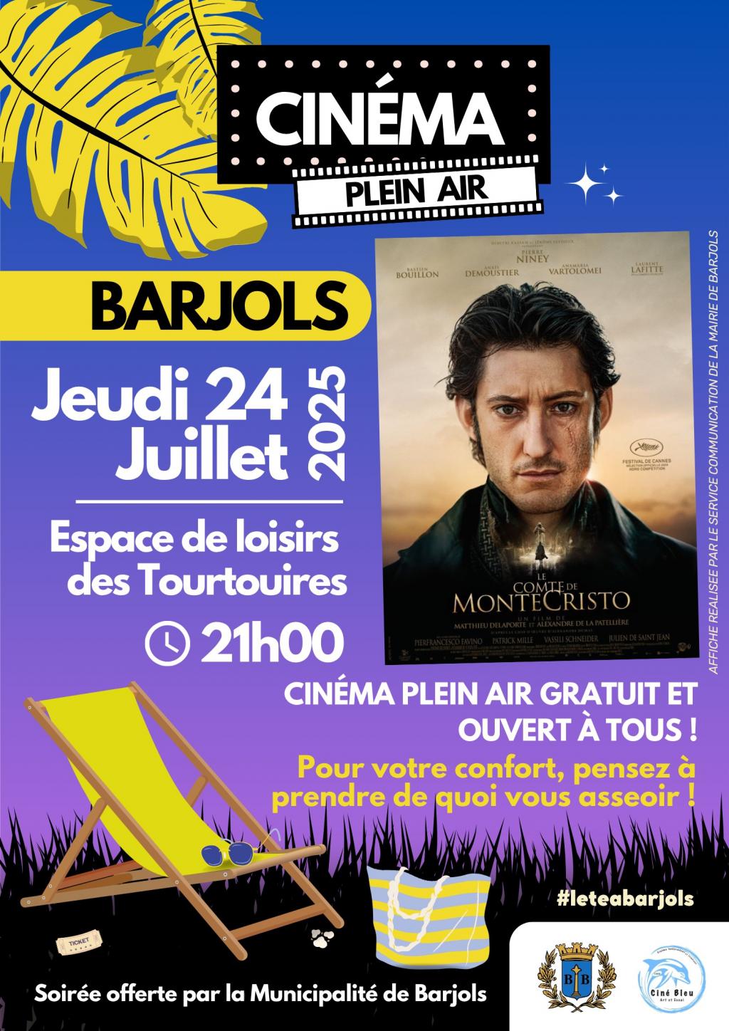 “ Organisé par la Municipalité en partenariat avec Ciné Bleu Barjols découvrez le film : le comte de Monte Cristo en plein air. Pensez à prendre quelque chose pour vous asseoir ! ”
