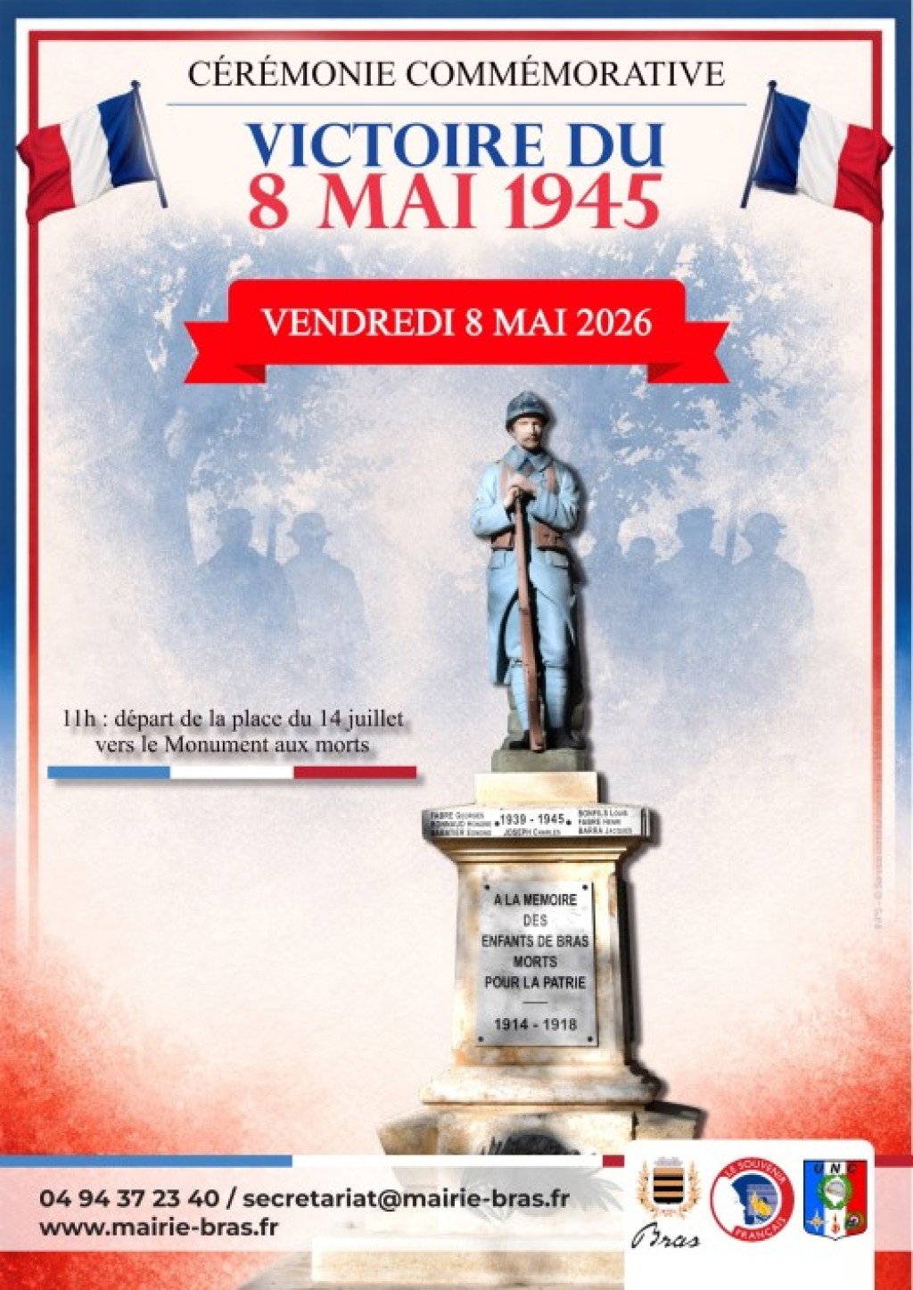 “ Cérémonie commémorative de la victoire du 8 mai 1945, avec un départ de la place du 14 juillet vers le Monument aux morts. ”