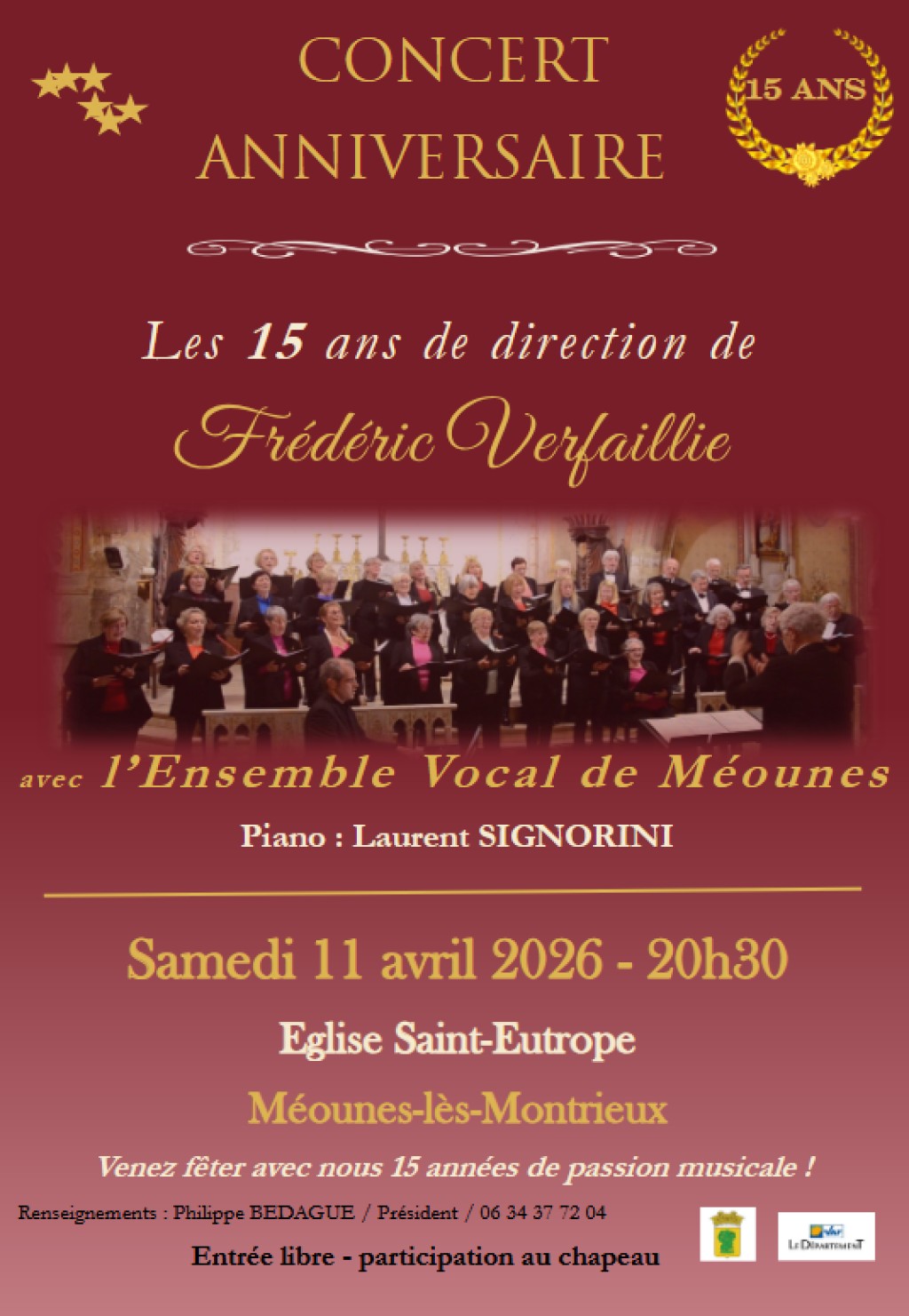 Les 15 ans de direction de Frédéric Verfaillie avec l'Ensemble Vocal de Méounes. Avec au Piano Laurent Signorini.