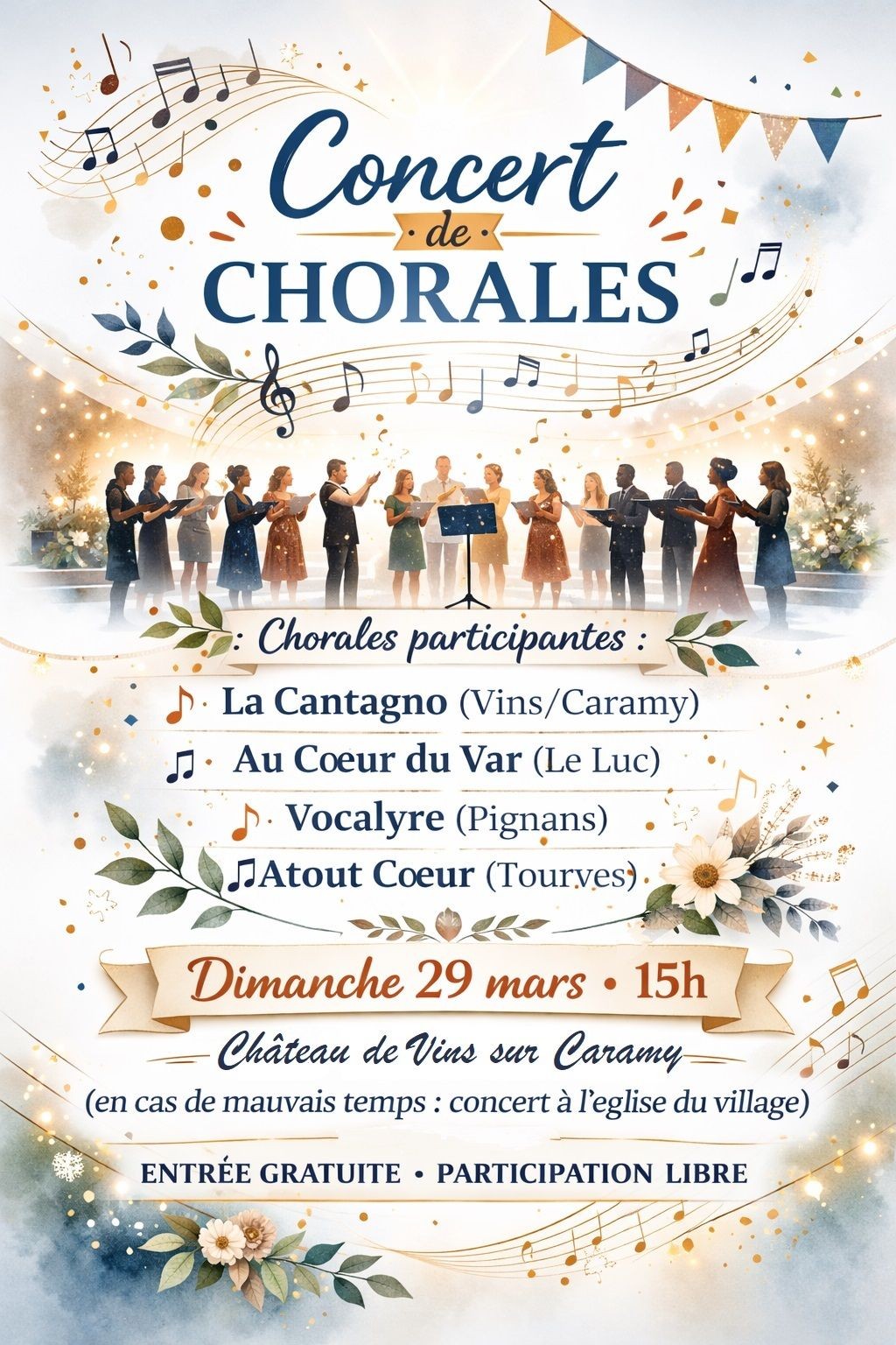 “ Laissez vous surprendre par les chants des différentes chorales: La Cantagno, Au cœur du Var, Vocalyre et Atout Coeur ”