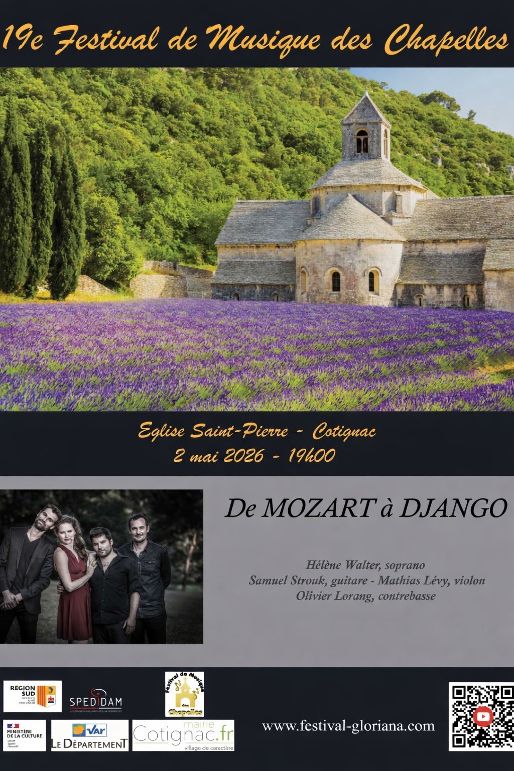 “ 19ème festival de Musique des Chapelles", de Mozart à Django Par Hélène WALTER, Samuel STROUK, Mathias LEVY et Olivier LORANG ”