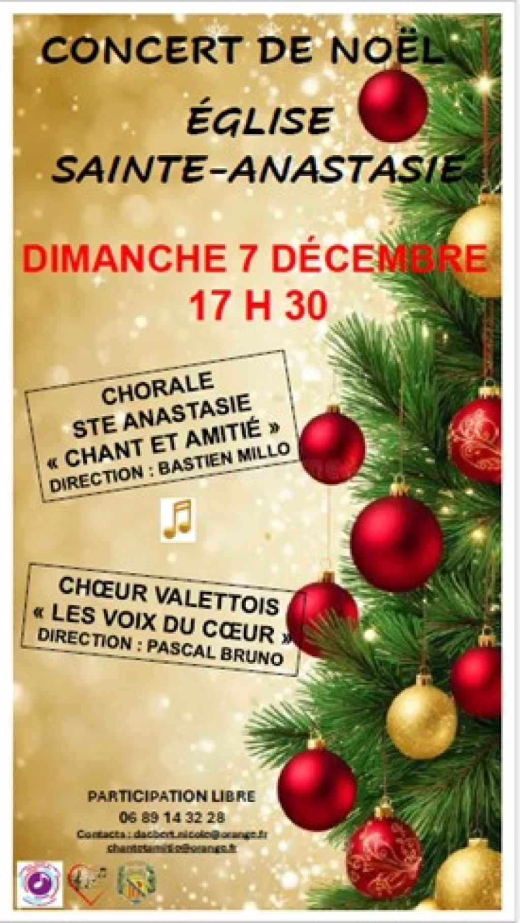 “ Un concert de Noël vous est proposé par la Chorale de Sainte Anastasie et le Chœur Valettois ”