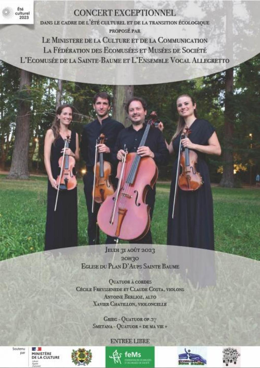 “ Concert exceptionnel dans le cadre de l'été culturel et de la transition écologique proposé par le Ministère de la Culture et Communication, la fédération des Ecomusées et musées de société, l'Ecomusée de la Sainte Baume et l'ensemble vocal Allegretto ”