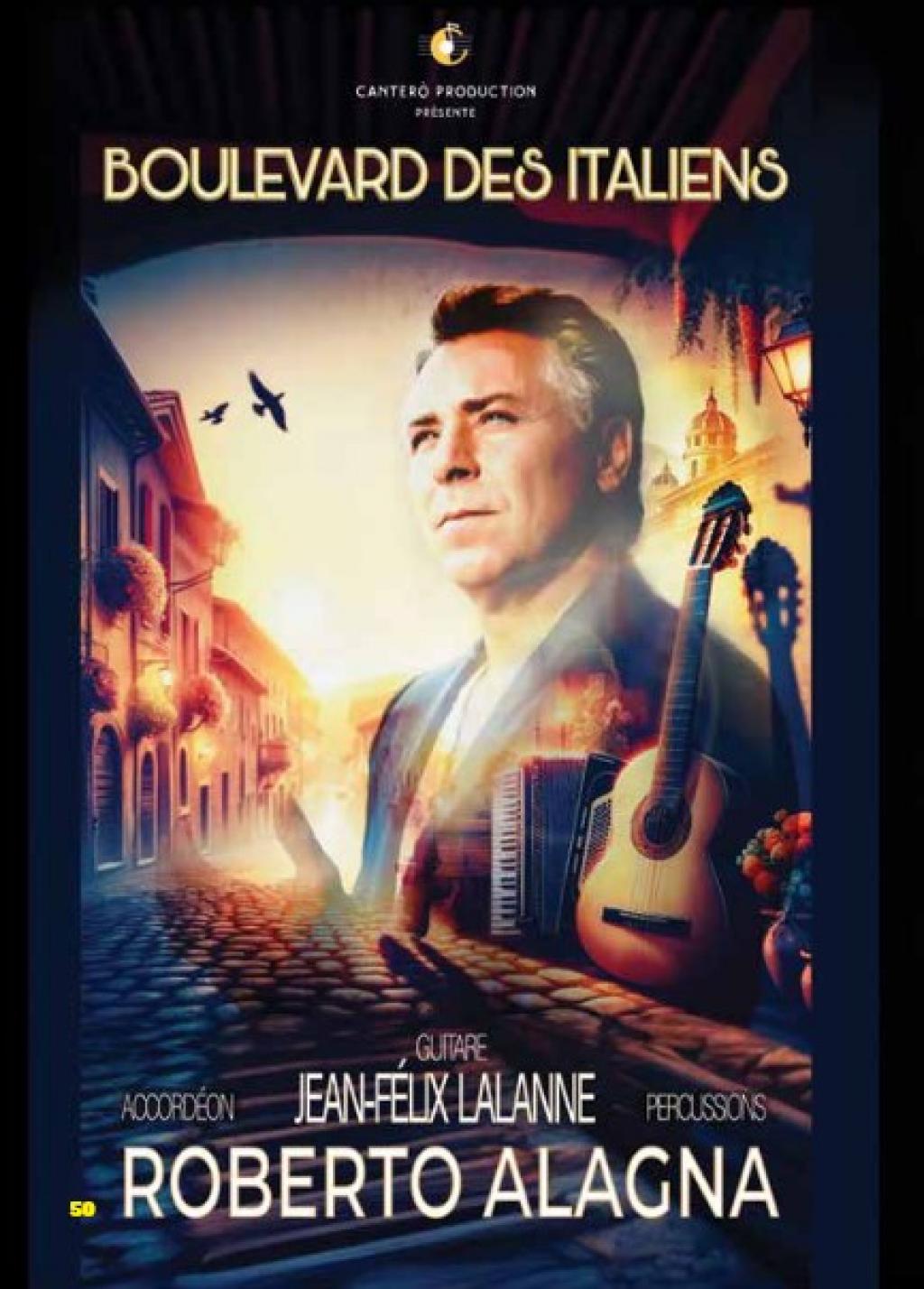 “ Roberto Alagna interpète un récital de chansons italiennes dans un écrin purement acoustique accompagné à la guitare par Jean-Félix Lalanne, à l’accordéon par Roland Romanelli et aux percussions par Pascal Reva. ”
