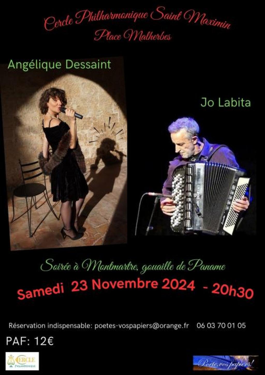 “ Angélique Dessaint est une « Titi Parisienne » qui aime partager le « vieux Paris », faire chanter Piaf et faire danser les amants. Dans ce spectacle très enjoué, Angélique Dessaint est accompagnée à l'accordéon par Jo Labita. ”