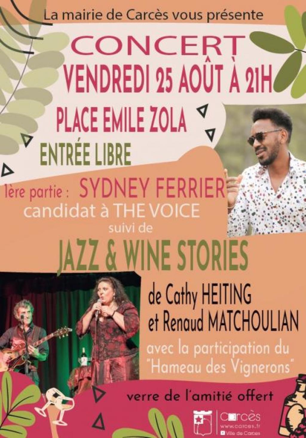Première partie avec Sydney Ferrier, candidat à the Voice. Verre de l'amitié offert avec la participation du Hameau des Vignerons