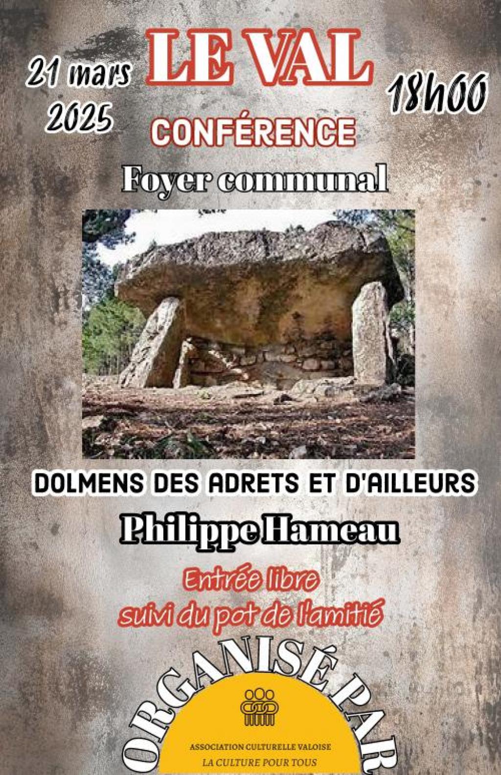 “ Le conférencier Philippe Hameau animera cette conférence, qui sera suivie du pot de l'amitié ”