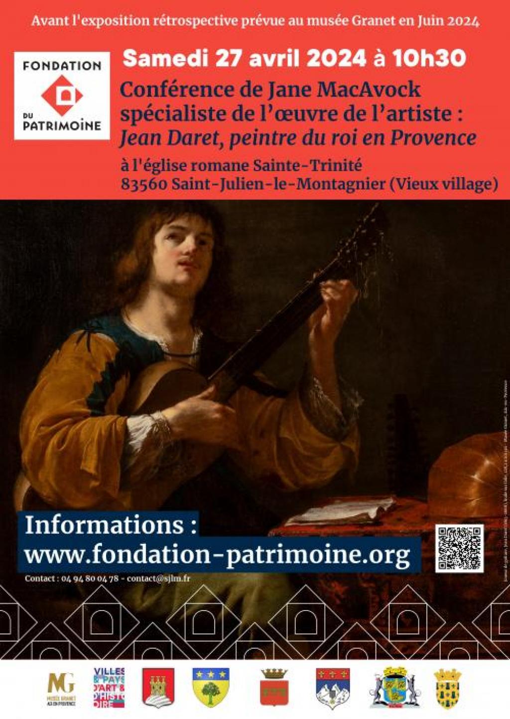 “ A l'occasion de l'exposition rétrospective prévue au Musée Granet en juin prochain sur le peintre du 17ème siècle Jean Daret, nous vous donnons rendez-vous à Saint-Julien-le-Montagnier pour une conférence menée par la spécialiste Jane MacAvock. ”