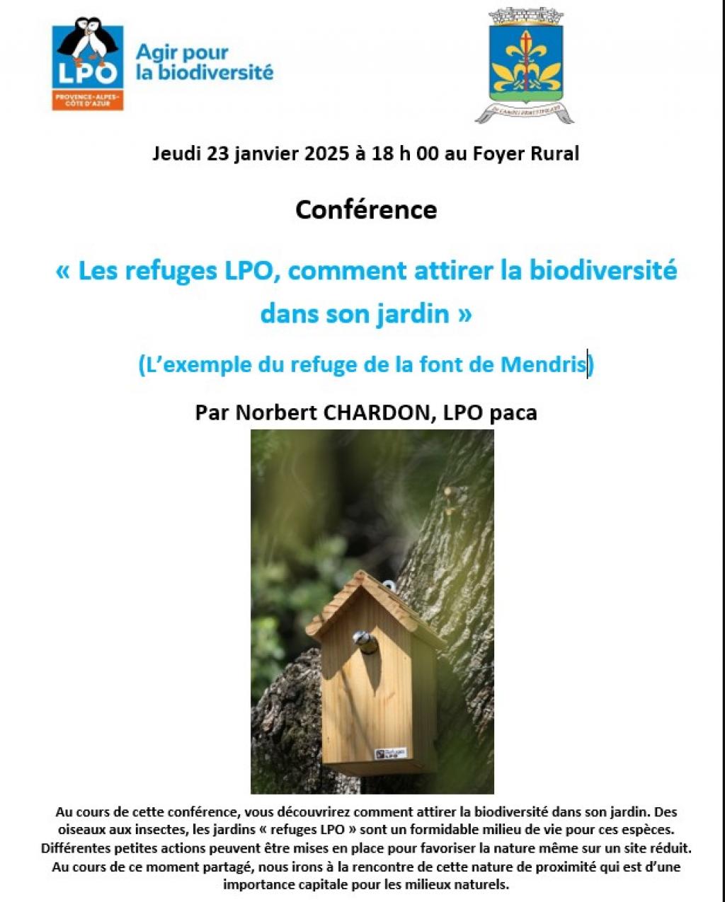 “ Au cours de cette conférence, vous découvrirez comment attirer la biodiversité dans son jardin. Des oiseaux aux insectes, les jardins sont un formidable milieu de vie pour ces espèces. ”