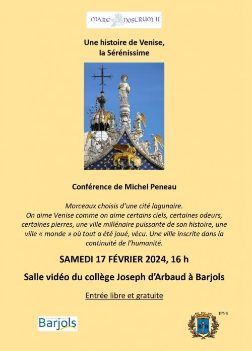 “ Conférence animée par Michel Peno autour de la sérénissime Venise qui fascine par son histoire séculaire, ses canaux et son patrimoine artistique inestimable. ”