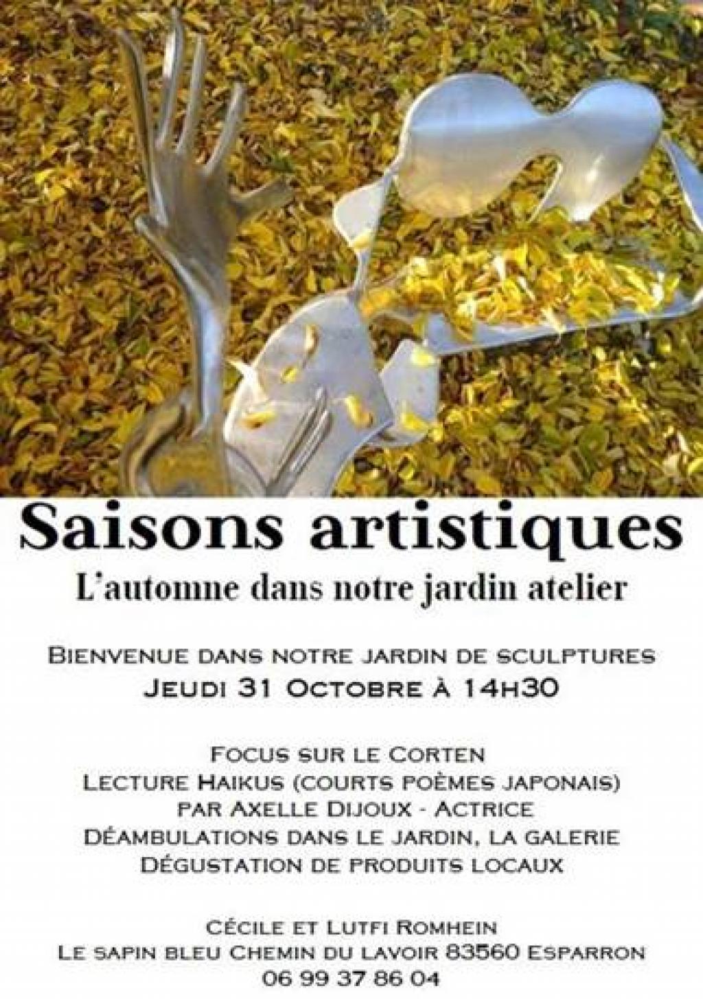 “ Venez découvrir les sculptures de notre atelier, présentes dans notre jardin avec les belles couleurs d'automne. Une présentation focus sur un matériau : le corten, une lecture de courts poèmes japonais par Axelle Dijoux ”