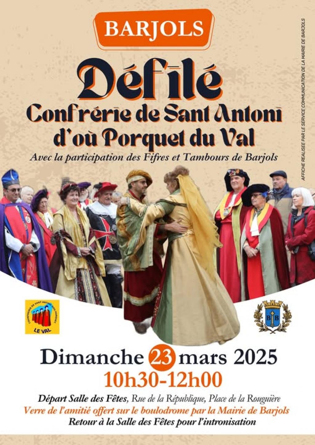 “ La Confrerie le Val et Madame le Maire de Barjols, Cathy Venturino ont l’honneur de vous convier au défilé de la Confrérie, avec la participation des Fifres et Tambours de Barjols ”