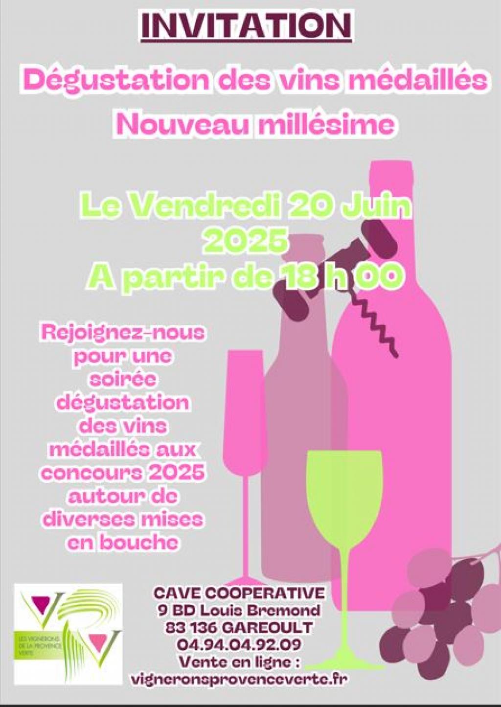 “ Rejoignez nous pour une soirée dégustation des vins médaillés aux concours 2025 autour de diverses mises en bouche. ”