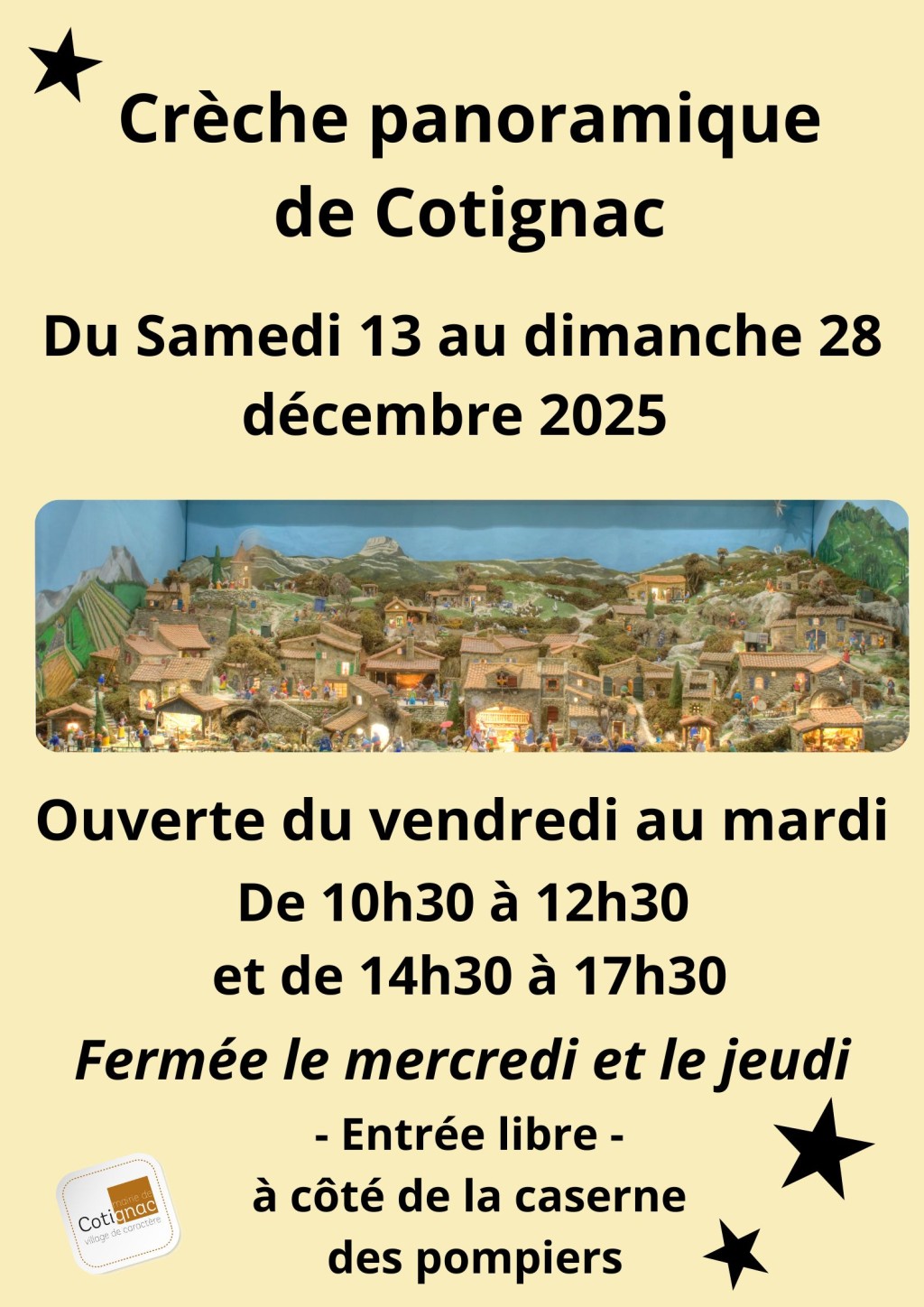 Du 13/12 au 28/12/2025 le lundi, mardi, vendredi et les week-ends de 10h30 à 12h30 et de 14h30 à 17h30.
