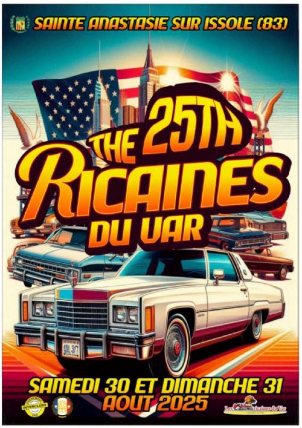 “ 25ème édition des Ricaines du Var, exposition de voitures américaines tout le week-end, nombreux Food Trucks, stands américains, démonstrations et des concerts animeront la place de la gare. ”