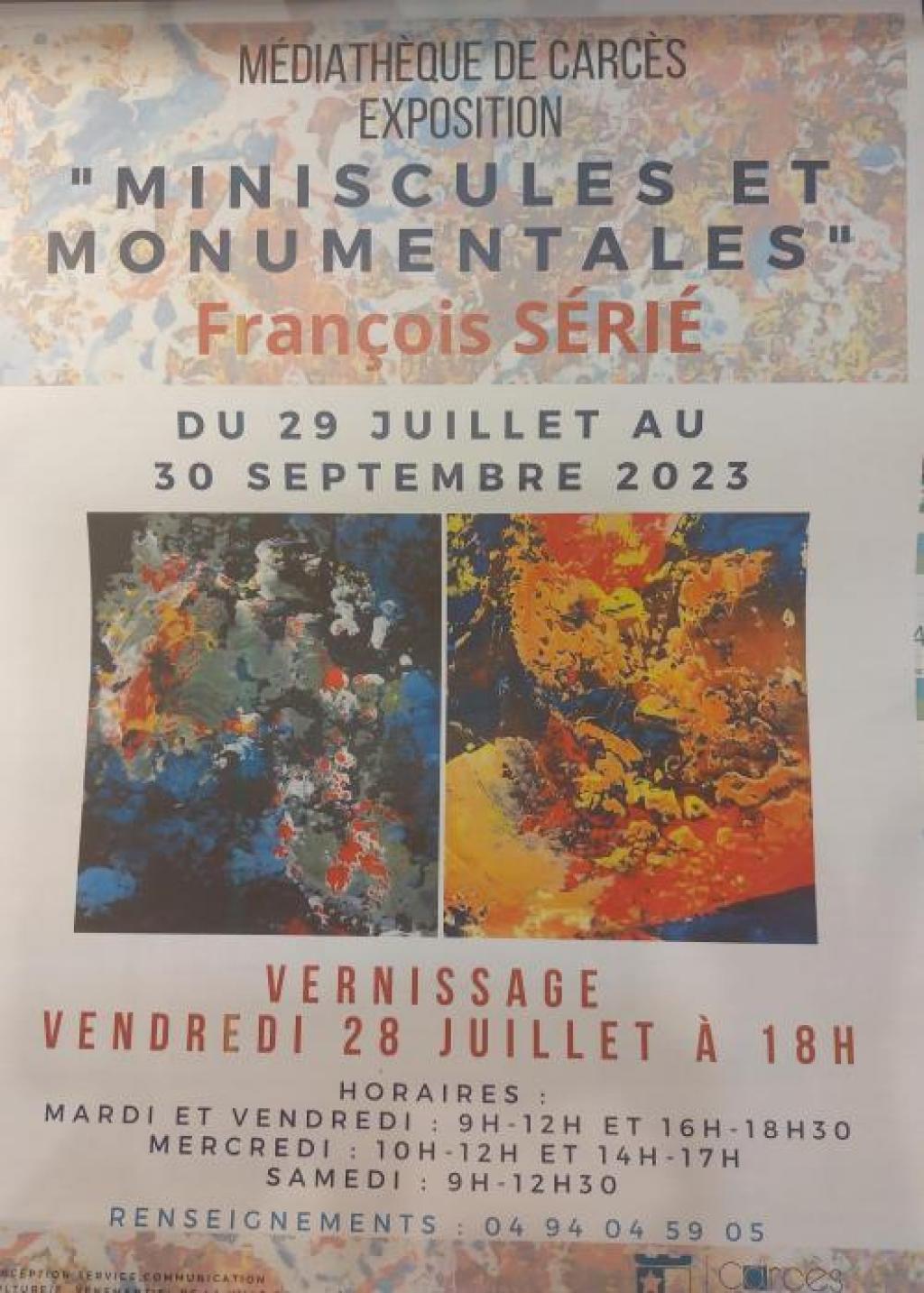 “ La Médiathèque vous propose une exposition de peintures de l'artiste François Sérié sur le thème "Minuscules et Monumentales" ”
