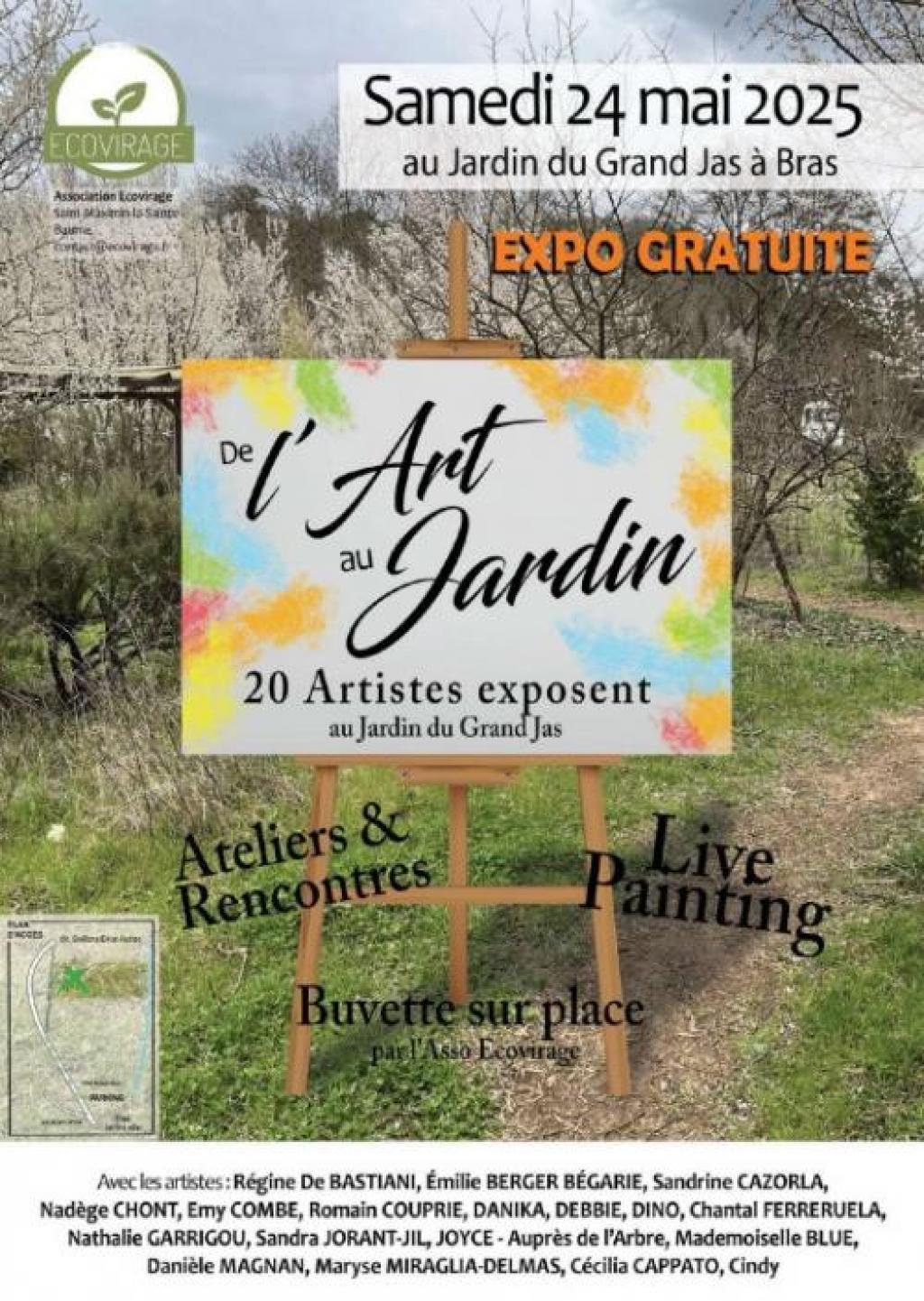 “ 20 artistes exposent au jardin du Grand Jas. Ateliers et rencontres, live painting rythmeront cette journée ”