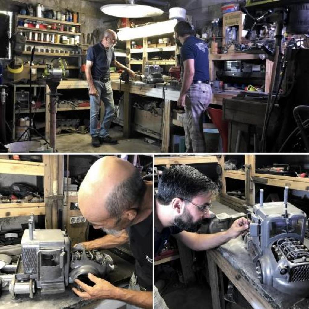 Dans leur atelier d'art, Père et fils unissent leur créativité pour concevoir des pièces artistiques contemporaines uniques, alliant la passion pour les engins à moteur et le talent artistique.