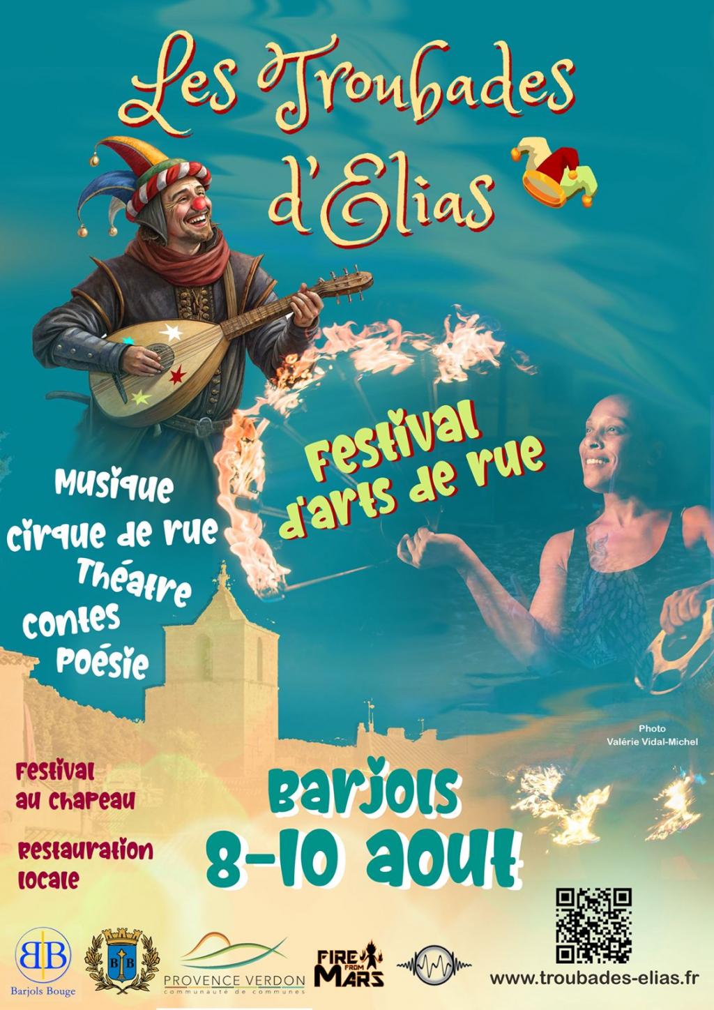 C'est grâce au travail d'une équipe très motivée qu'on vous propose la première édition du tout premier festival d'arts de rue à Barjols "Les Troubades d'Elias" qui vise à faire vivre le village de Barjols sur une durée de 3 jours au travers de l'expression de différents arts de rue et à la mémoire d'un personnage emblématique de Barjols.