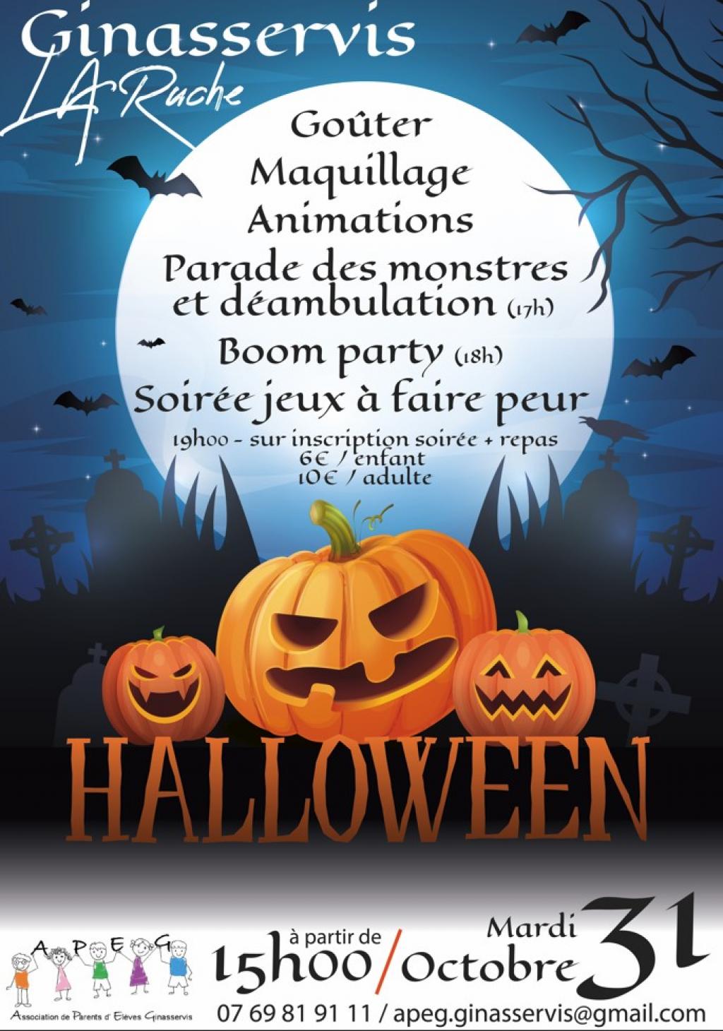“ Venez profiter d'animations autour d'Halloween ! Goûter, maquillage et à partir de 17h (si la météo le permet) la parade des monstres et la déambulation dans les rues du village. ”