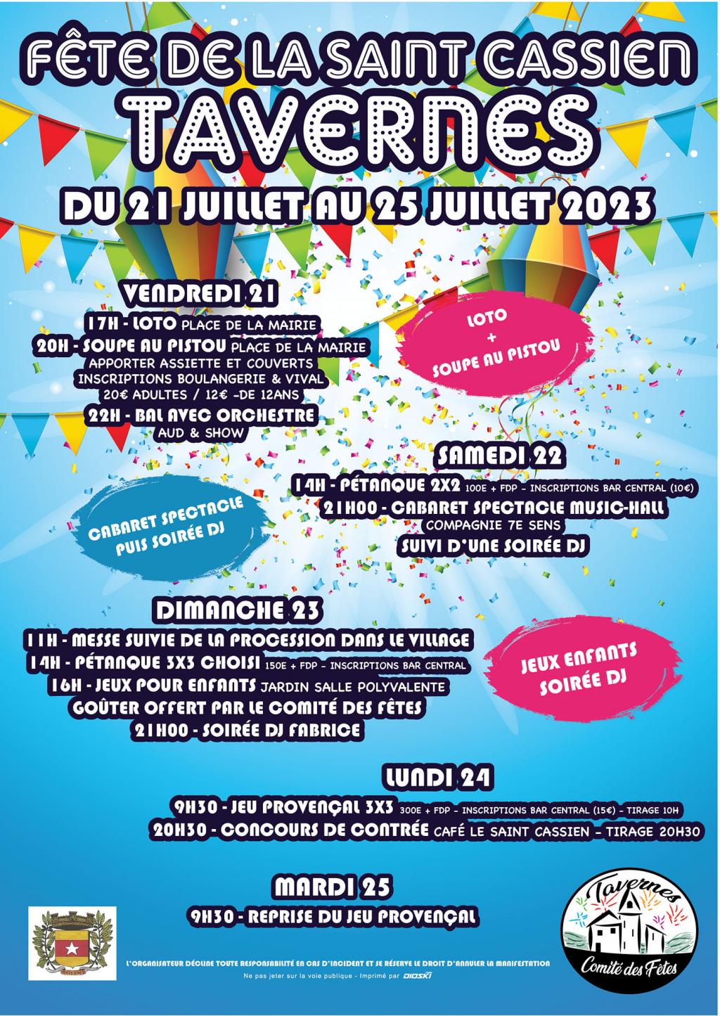 “ Venez assister à la fête de la Saint Cassien, concours de boules, bal, processions au programme ”