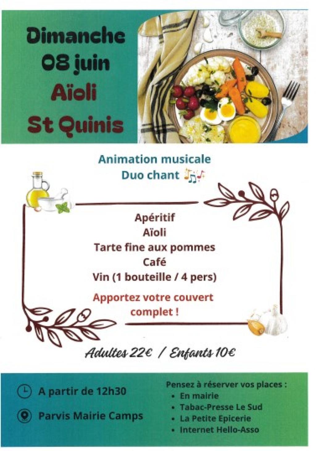 > 12h30 : Repas Aïoli - Animation musicale Duo Chant - Parvis de la Mairie