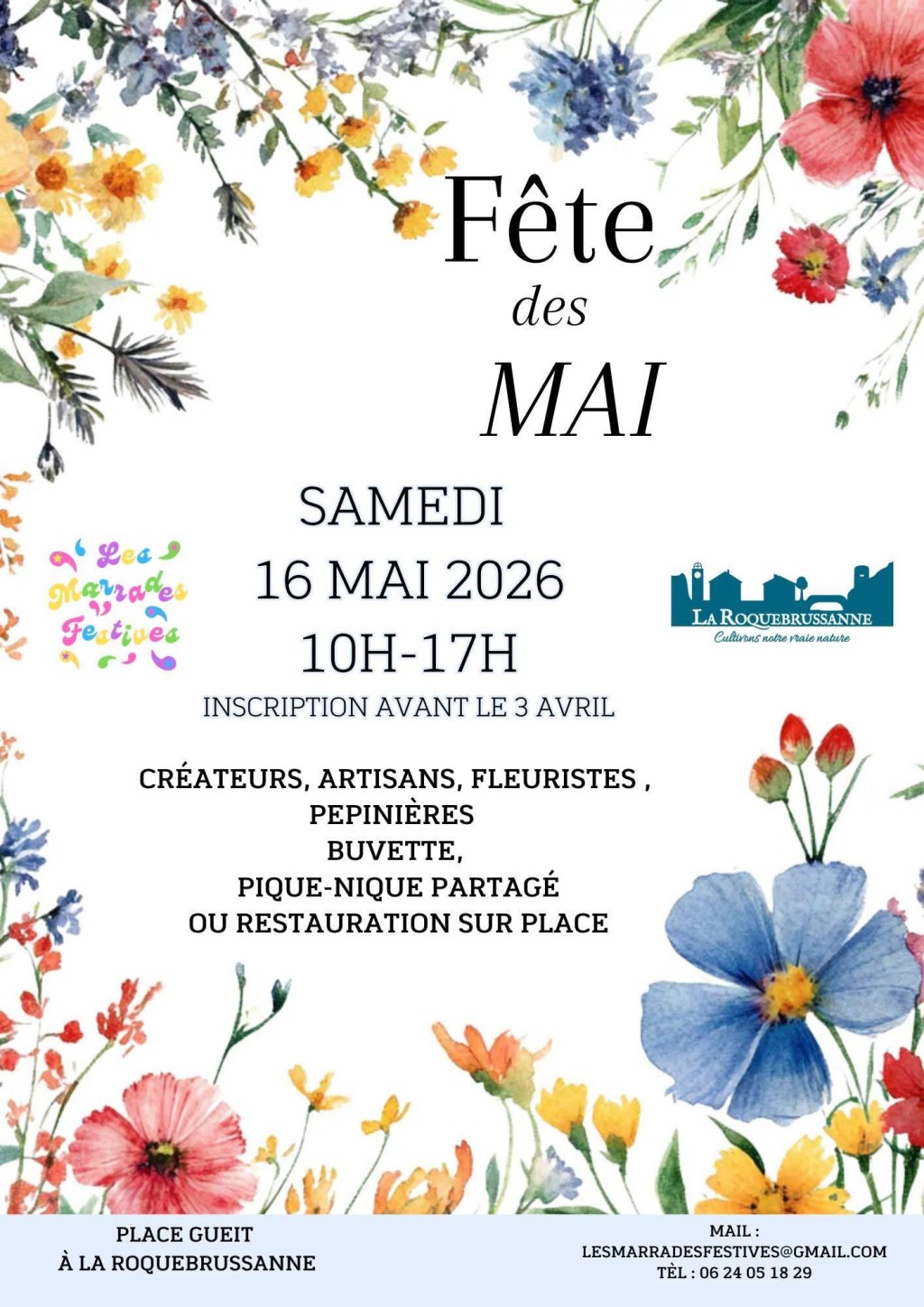 “ Créateurs, artisans, fleuristes, pépinières, buvette. Pique nique partagé ou restauration sur place. ”