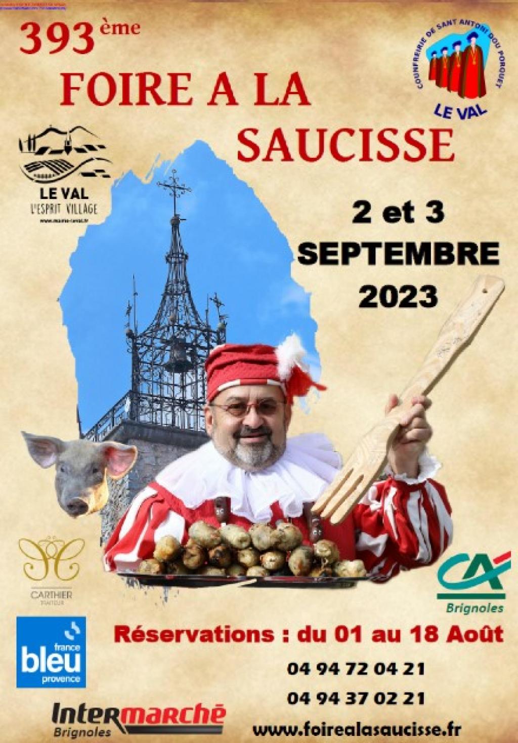 “ Le Val fête la 393ème foire à la saucisse cette année ! Fête traditionnelle sur le thème de La Saucisse, avec un marché des saveurs, les défilés des confréries, des reconstitutions historiques et des repas animés. ”