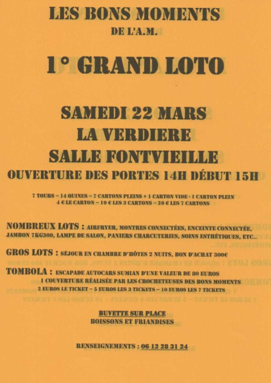 “ 14 Quines. 7 cartons pleins. De nombreux lots à gagner. Buvette sur place. Boissons et friandises ”