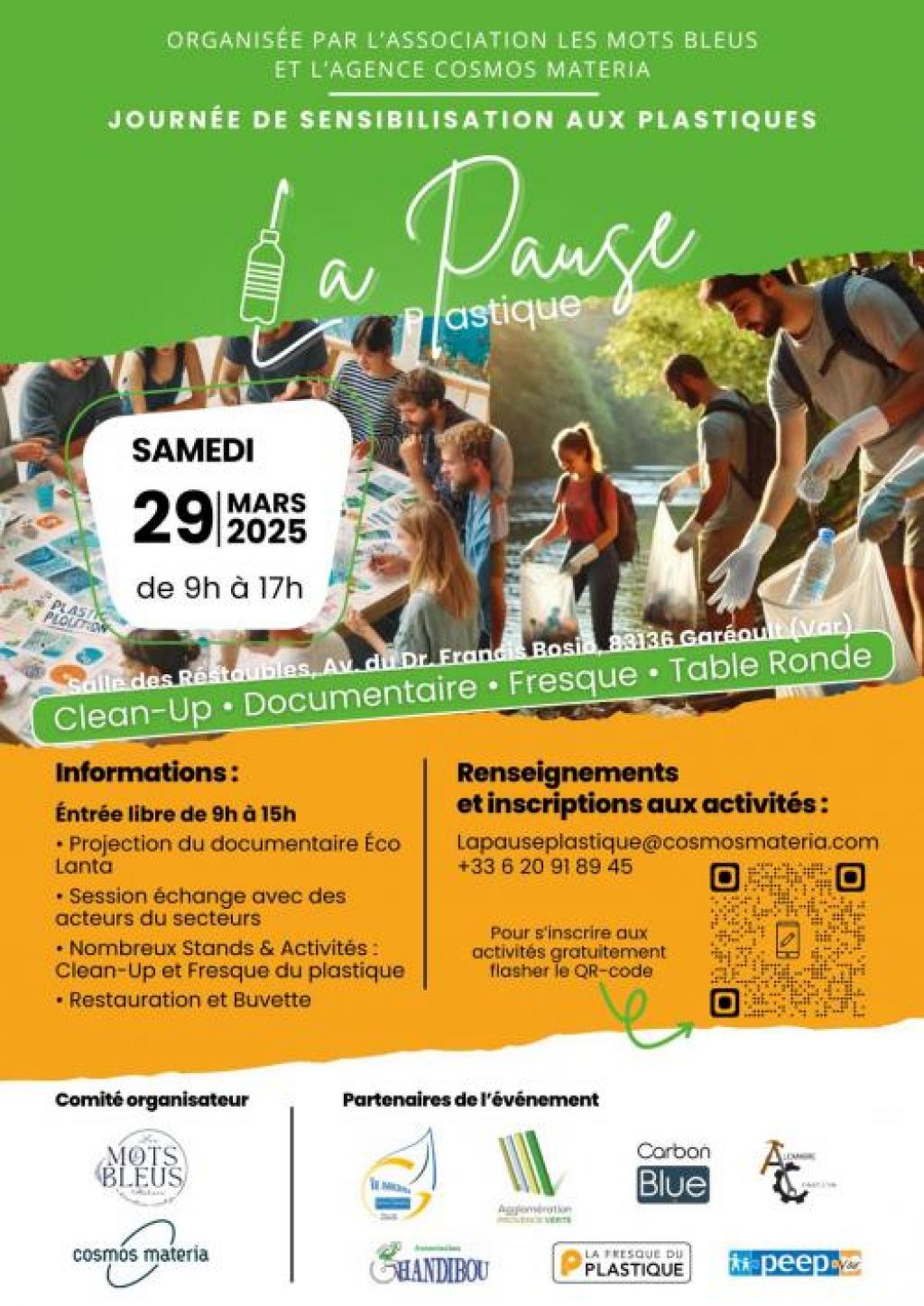 L'association les Mots Bleus Garéoult avec le support scientifique de l'agence Cosmos Materia co-organisent la première édition de la journée de sensibilisation aux plastiques