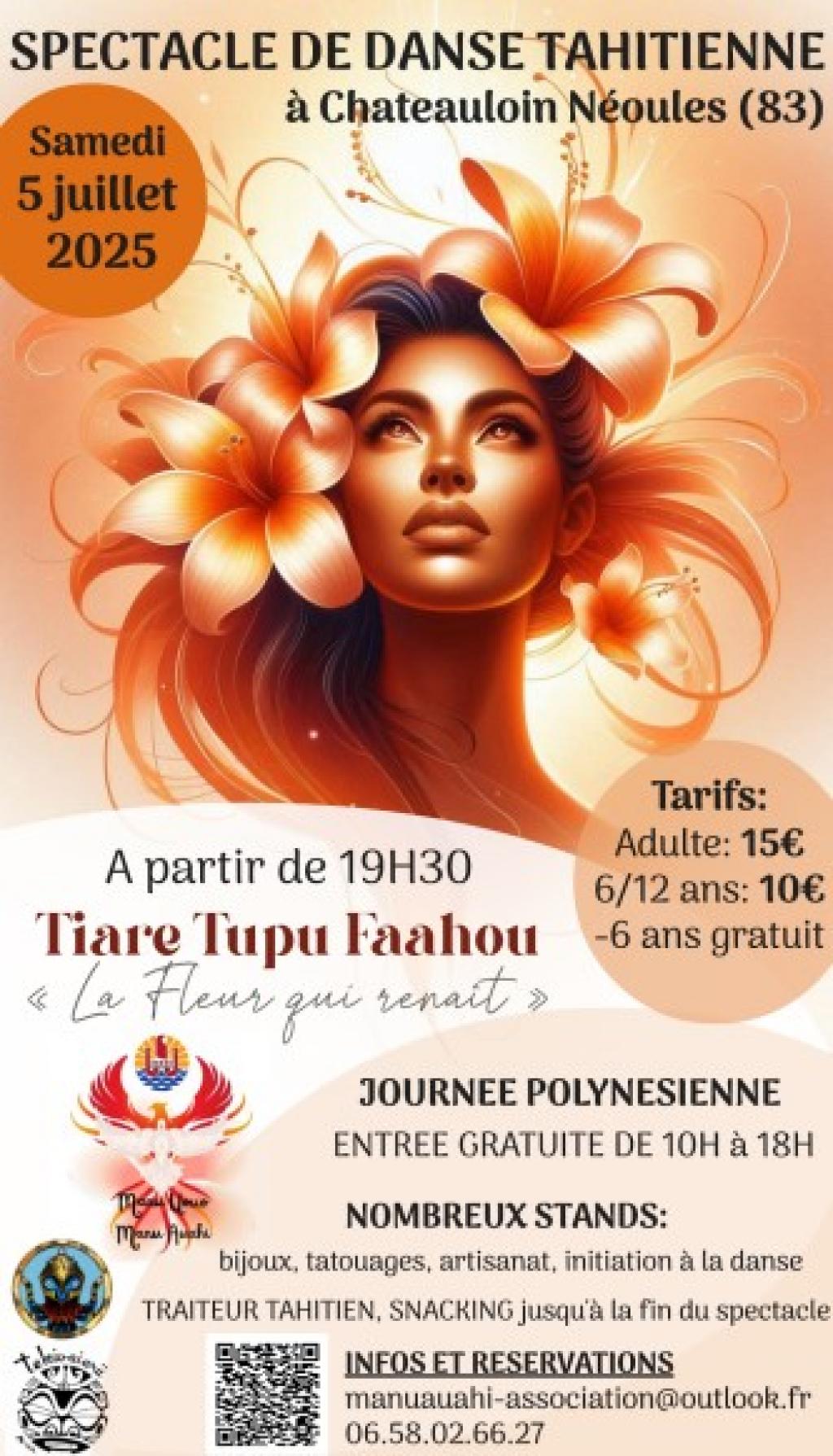 “ Plongez-vous dans l'univers polynésien lors de cette journée rythmée par un spectacle de danse tahitienne "Tiare Tupu Faahou", des stands avec des bijoux, tatouages, artisanat et initiation de danse tahitienne. Traiteur tahitien et snacking sur place. ”