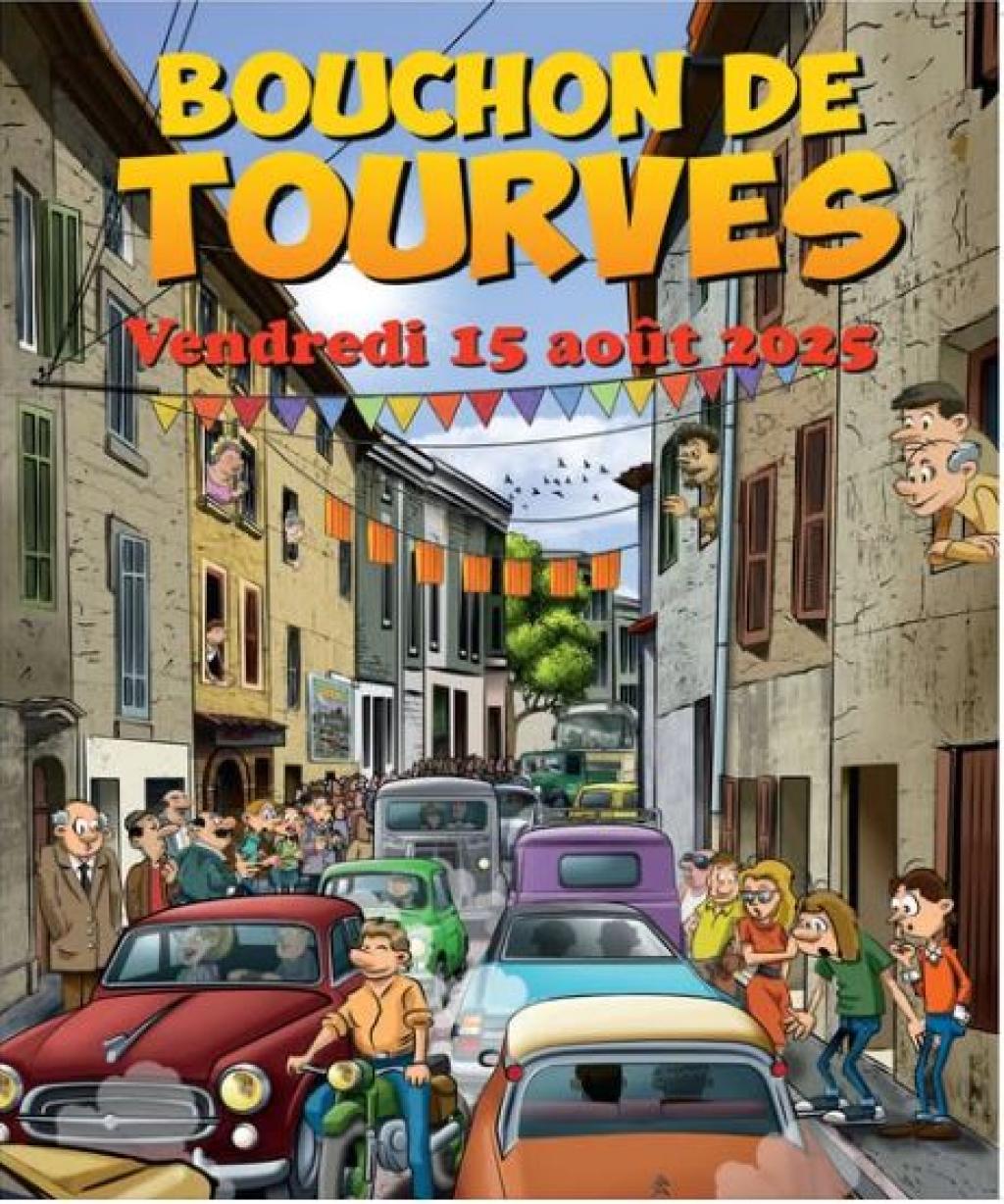 “ Cette année, le Bouchon de Tourves revient. Reconstitution du fameux Bouchon de la RN7 qui se produisait dans la traversée du village de Tourves durant les années 60. Défilé de voitures anciennes dans le centre du village ”