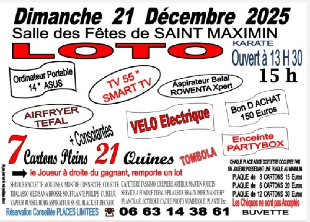 “ Venez tenter de gagner de nombreux lots : ordinateur Portable 14" Asus, aspirateur balai Rowenta, Airfryer Tefal, Tv 55" SmartTv, vélo électrique et bien d'autres encore . Buvette sur place ”