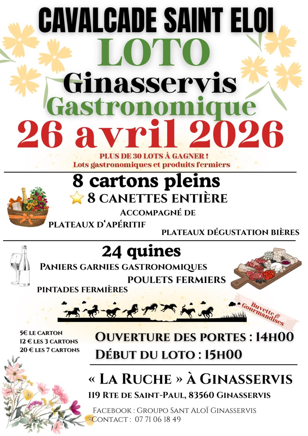 Il y aura également 24 quines avec des paniers garnis gastronomiques, des poulets fermiers et des pintades fermières. Une buvette et des gourmandises seront disponibles sur place pour agrémenter l'événement.