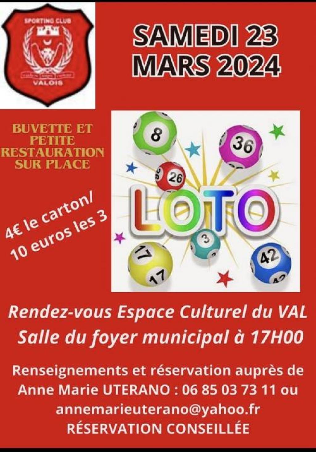 “ De nombreux lots à gagner. Une ambiance conviviale et chaleureuse. Buvette et petite restauration sur place ”
