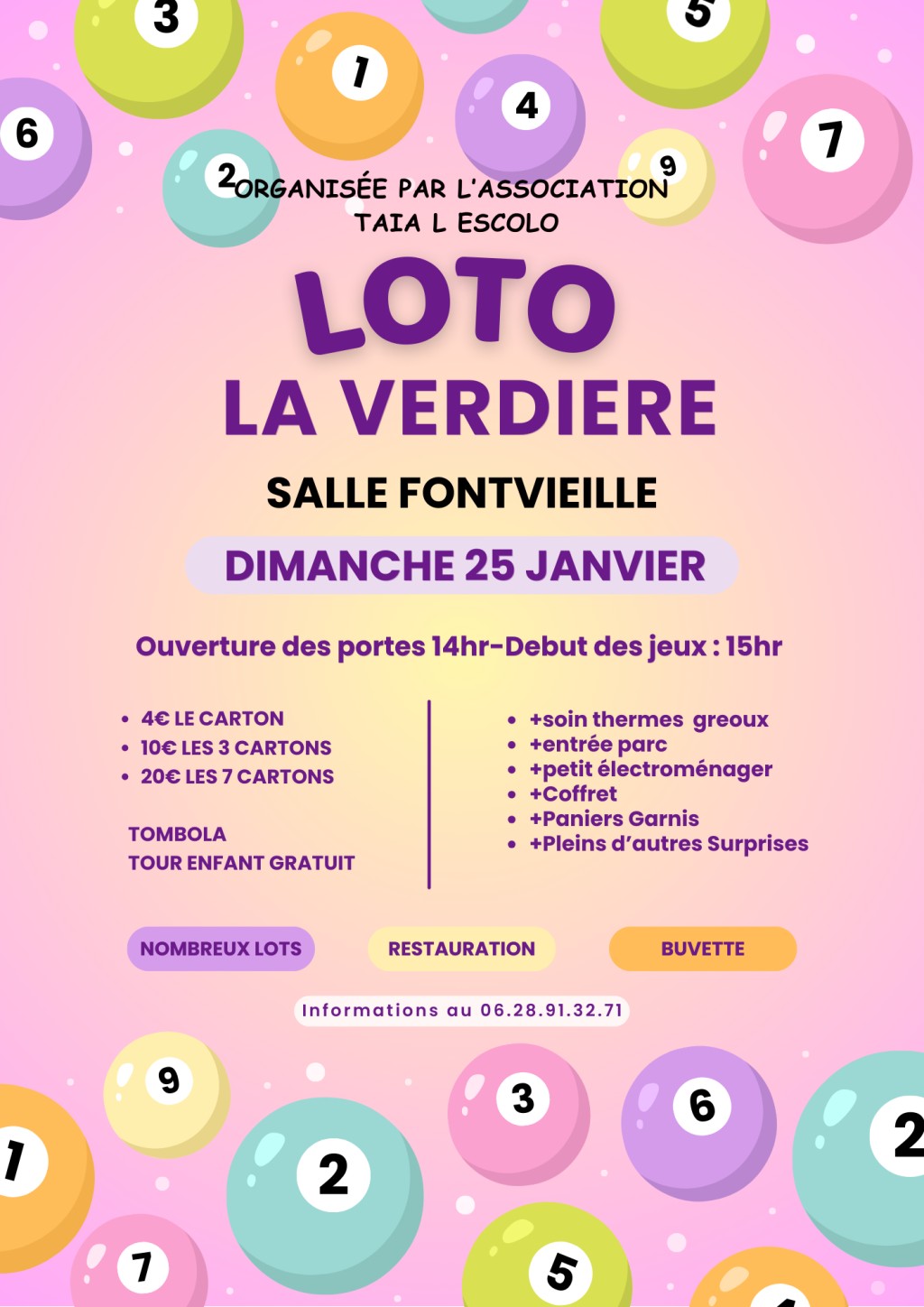 “ De nombreux lots à gagner : soins thermes Gréoux, petit électroménager, paniers garnis et bien d'autres surprises. Restauration et buvette sur place ”