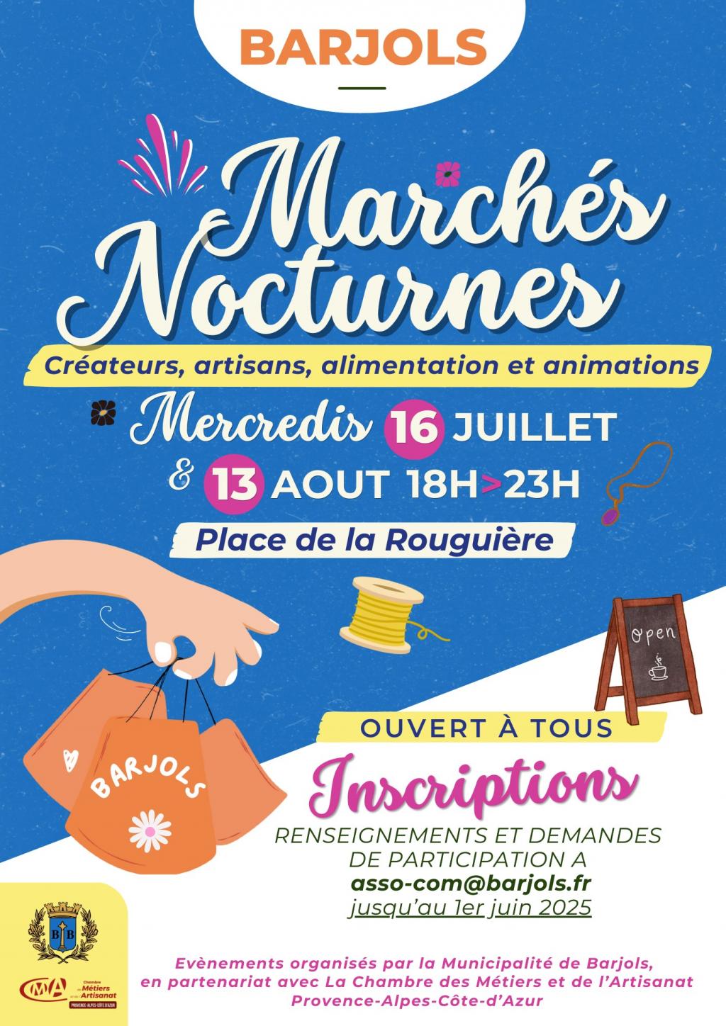 “ La Municipalité de Barjols et la chambre des métiers et de l'artisanat Paca, organisent un marché nocturne. Artisan, créateurs, bijoutiers, producteurs , vous avez jusqu'au 1er juin pour vous inscrire ”