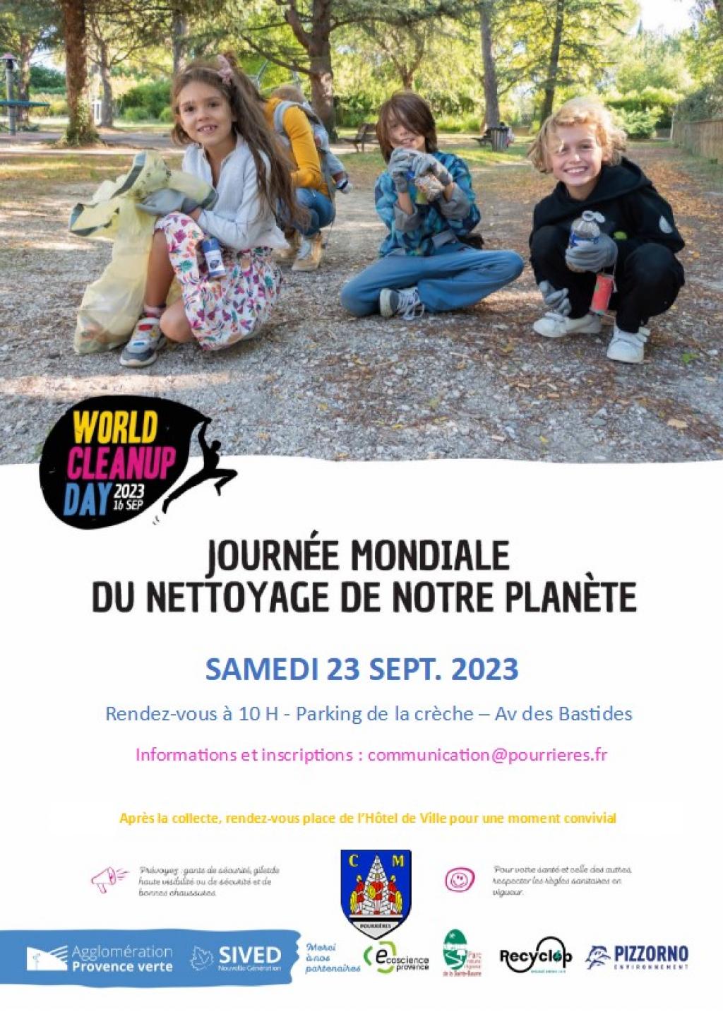 “ Venez participer à la Journée Mondiale de Nettoyage de notre planète. Après la collecte, rendez-vous place de l'Hôtel de ville pour un moment convivial. ”