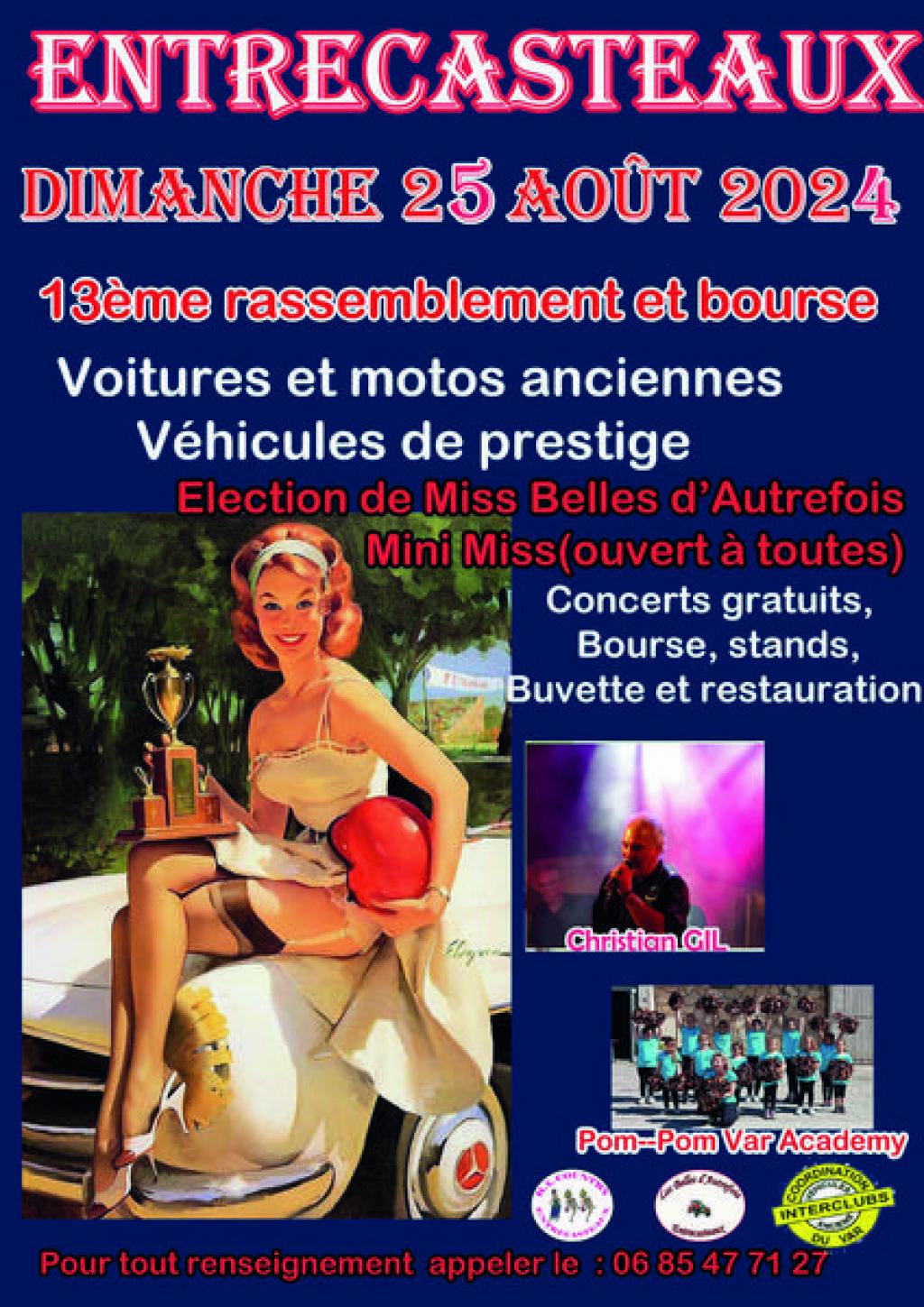 “ Election de Miss Belles d'autrefois, mini miss, concerts gratuits, bourse, stands, Buvette et restauration. ”