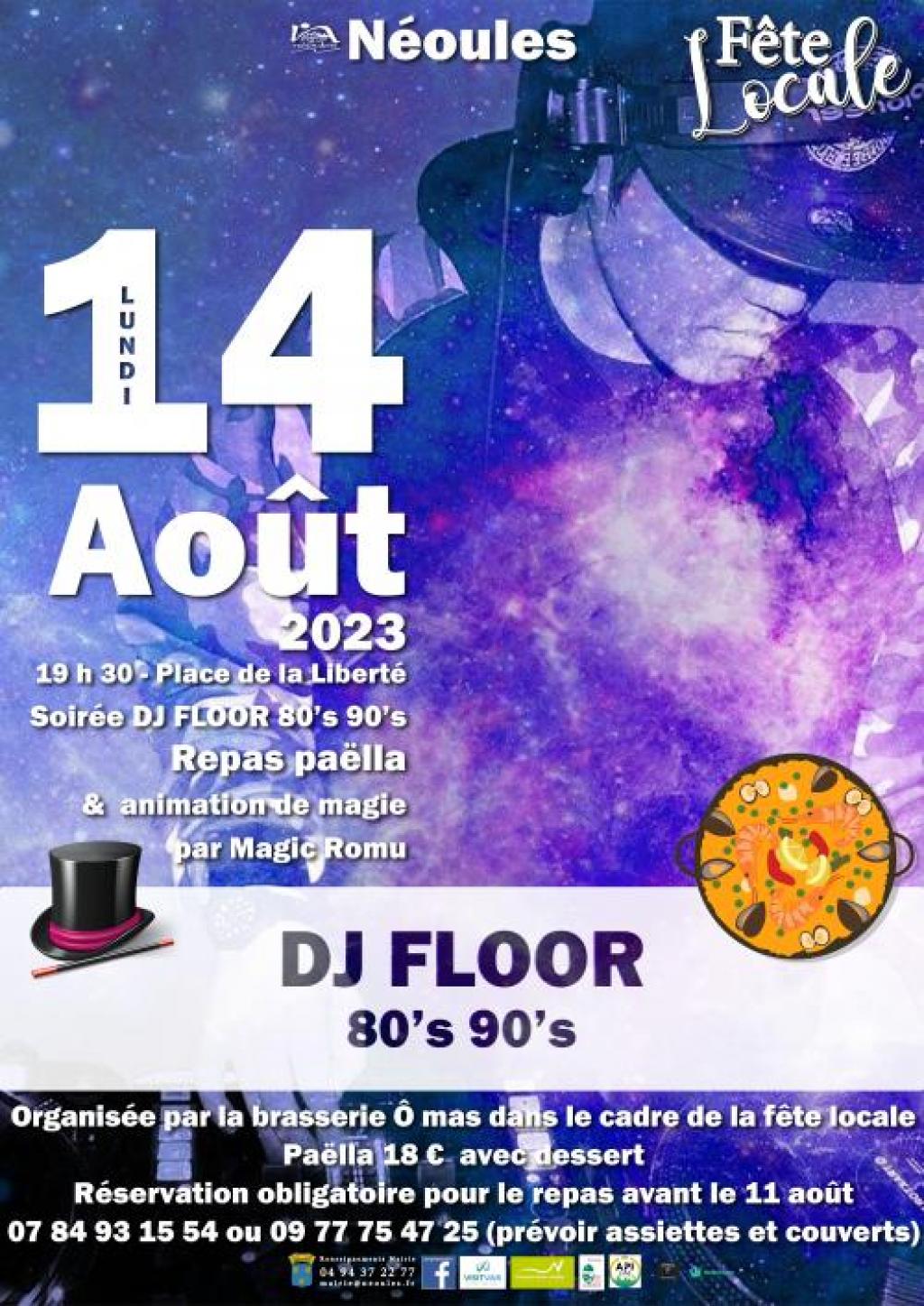“ La brasserie Ô mas vous propose, dans le cadre de la fête locale, une soirée ambiancée par le DJ-Floor, sur le rythme des années 80's 90's ! Grande paëlla sur réservation avant le 11 août. ”