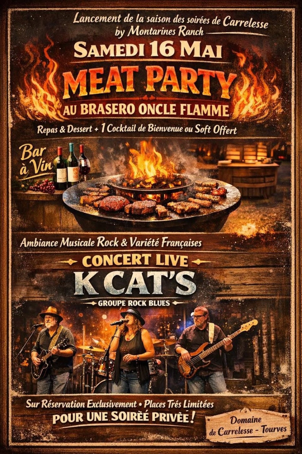 “ Le Domaine de Carrelesse vous invite à une soirée rock blues avec K Cats en live, brasero by Oncle Flamme, buvette sur place et ambiance chill et détendue à partager entre amis ou en famille. ”