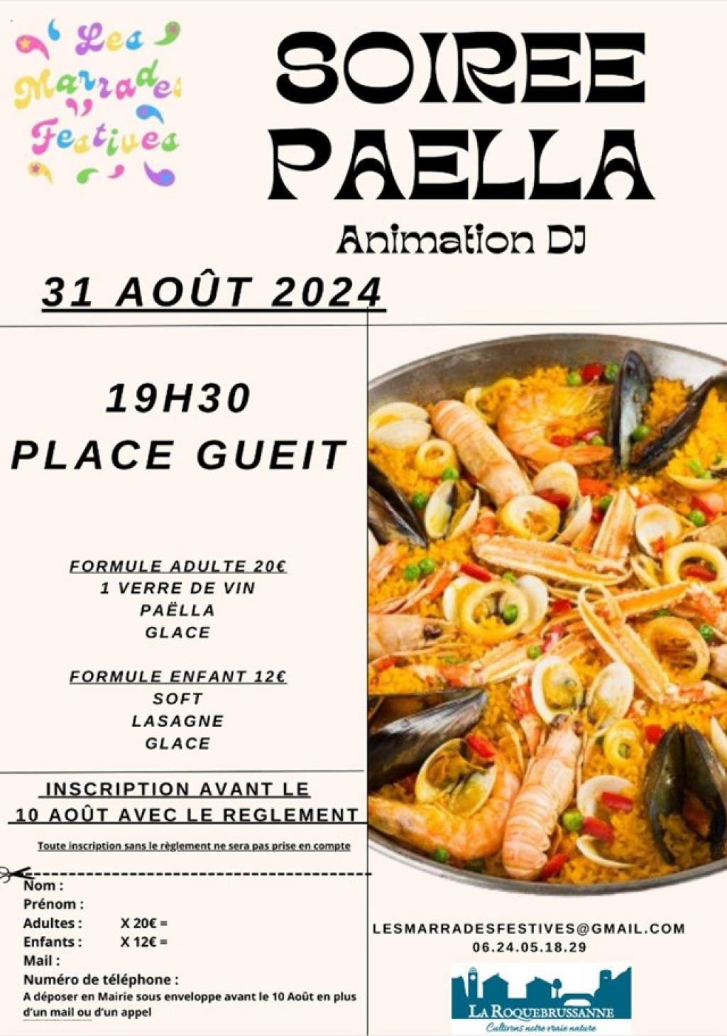 “ Une soirée paëlla suivie d'une animation DJ vous est proposée ”
