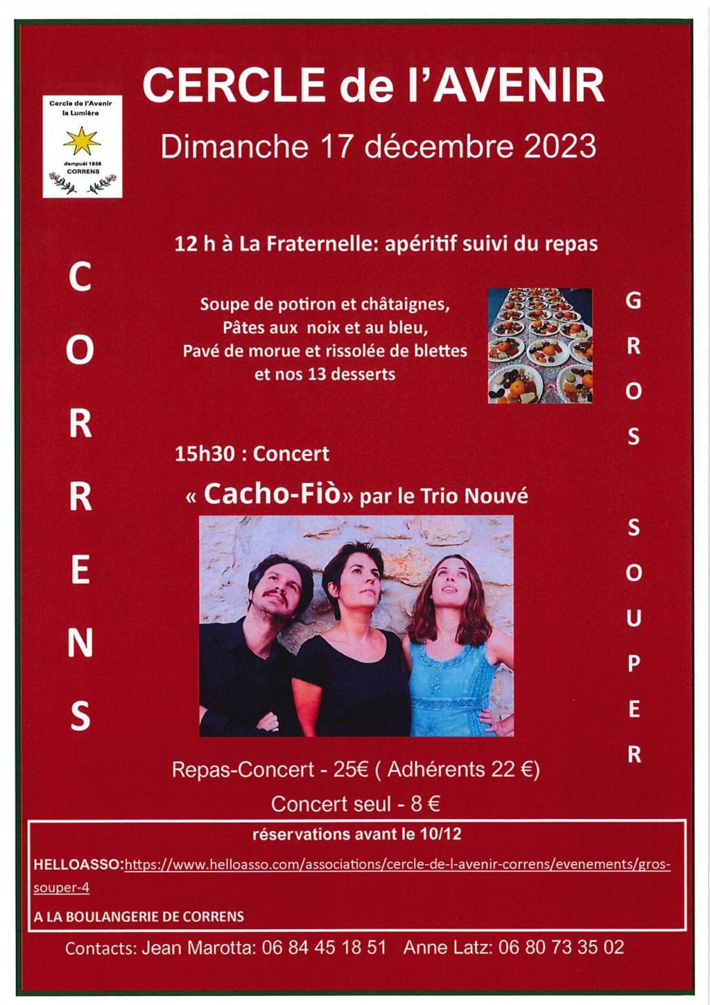 “ Le cercle de l'Avenir vous propose son gros souper suivi d'un chant de Noël Cacho- Fio par le Trio Nouvé ”