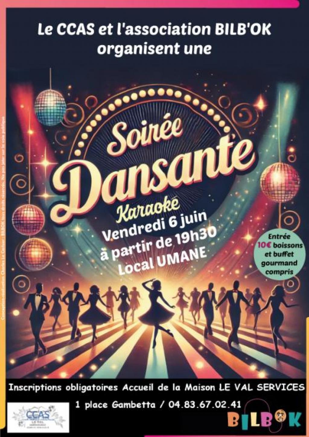 “ Venez profiter d'une soirée dansante rythmée par un karaoké entre amis ou en famille. Des boissons et un buffet gourmand vous sera également proposé. ”