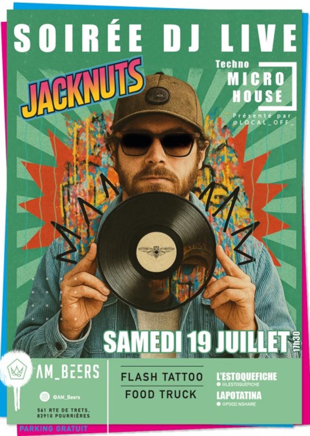“ Place à Jacknuts pour un dj live micro house et techno. Food truck et tatoos flash sur place ”